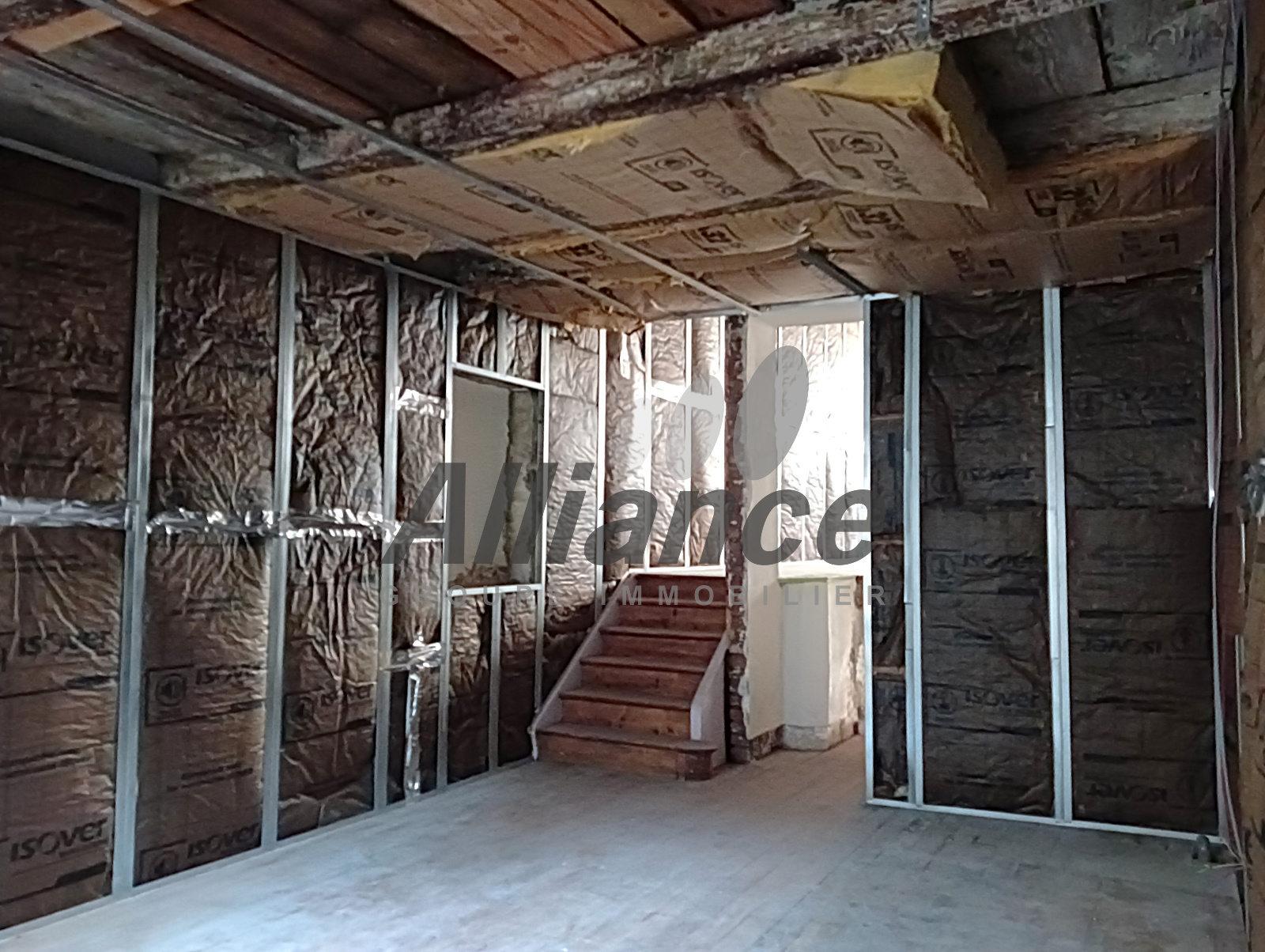 En demi niveau : deux grandes pièces.