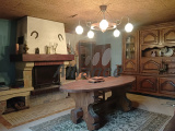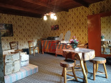 Elle se compose d'une partie habitation d'environ 95m² comprenant une entrée, WC, une cuisine avec fourneau à bois, un séjour avec insert, une salle de douche et deux chambres.