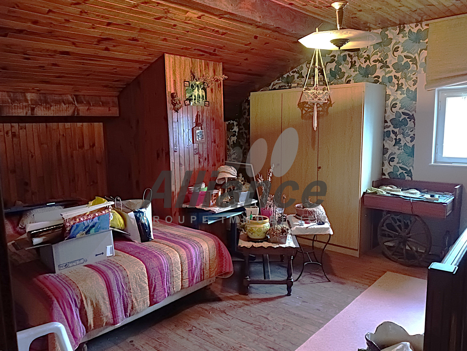 A l'étage, une grande mezzanine et greniers.